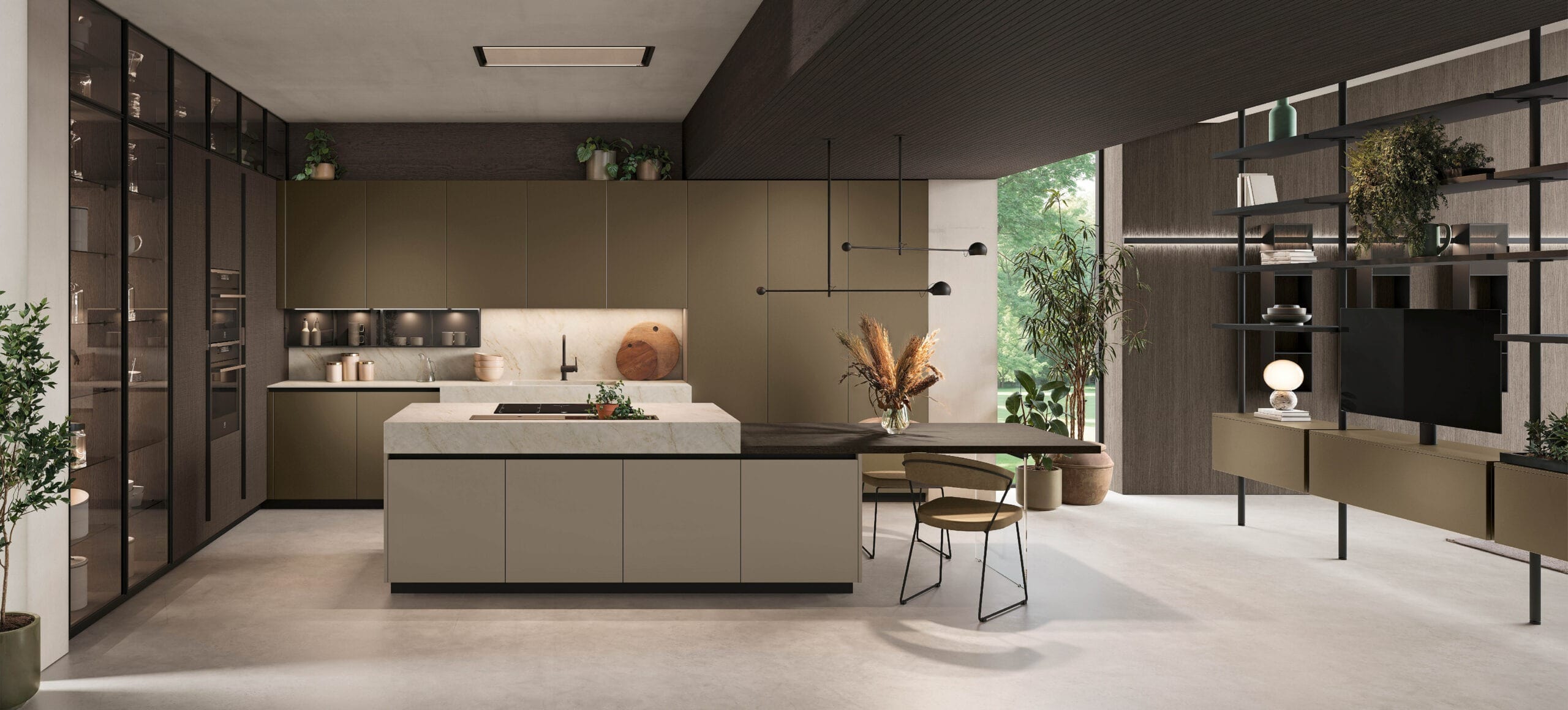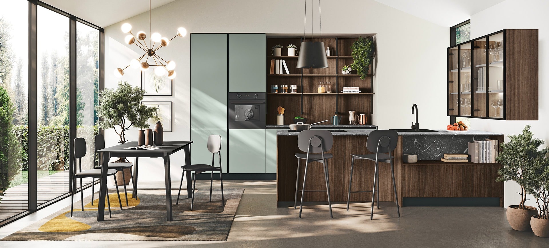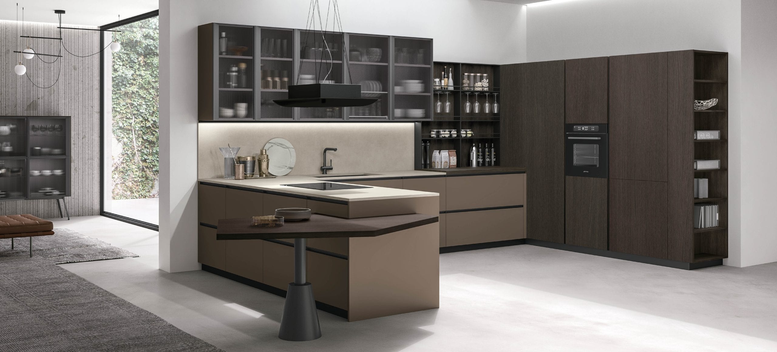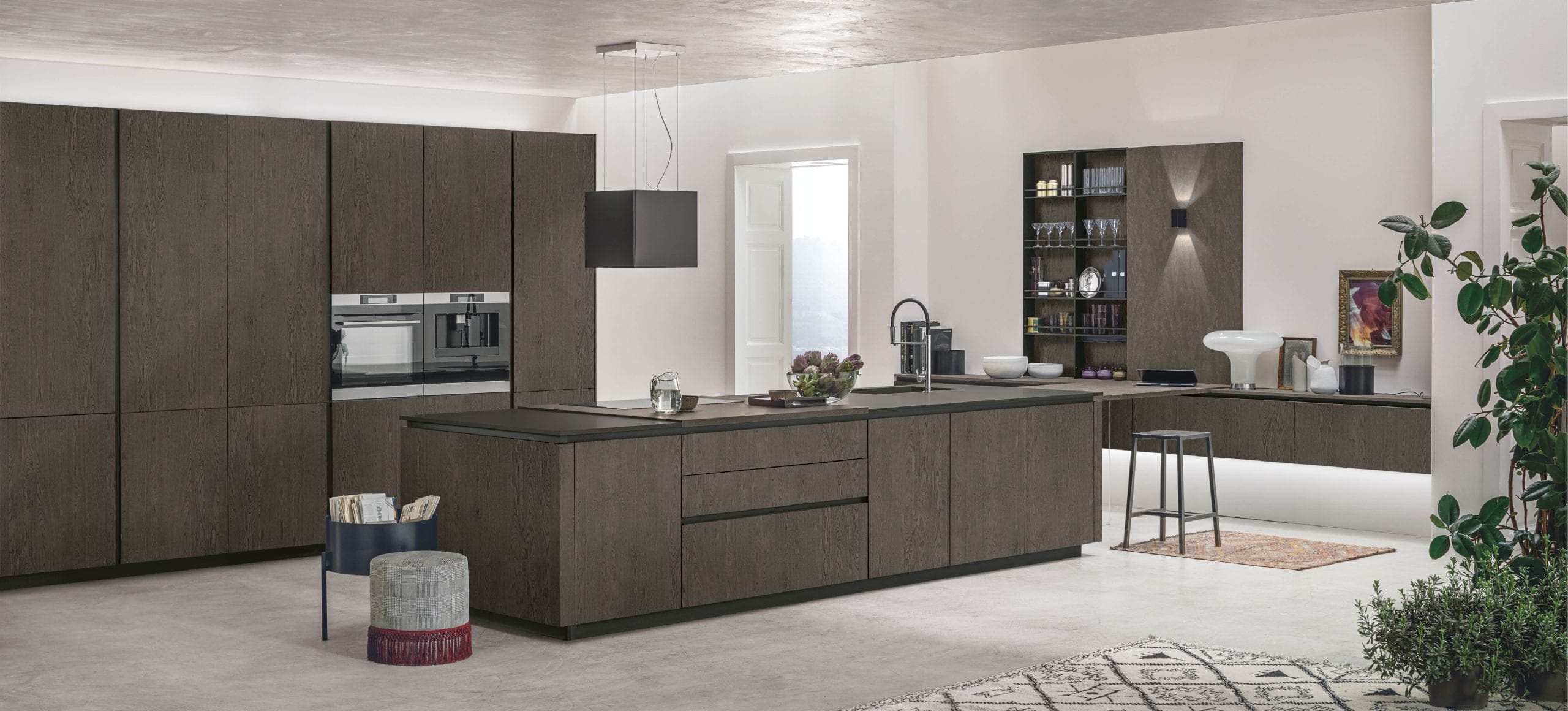 Connubio di estetica e organizzazione, la nuova Aliant si presta a una pluralità di linguaggi espressivi, riuscendo a dare vita a molteplici soluzioni: dalle isole scenografiche, rivestite in HPL alle raffinate cucine lineari esaltate dalla trasparenza del vetro, sino a soluzioni di grande fascino che dialogano con il living. Il risultato è una cucina piena di personalità, solida e raffinata allo stesso tempo.