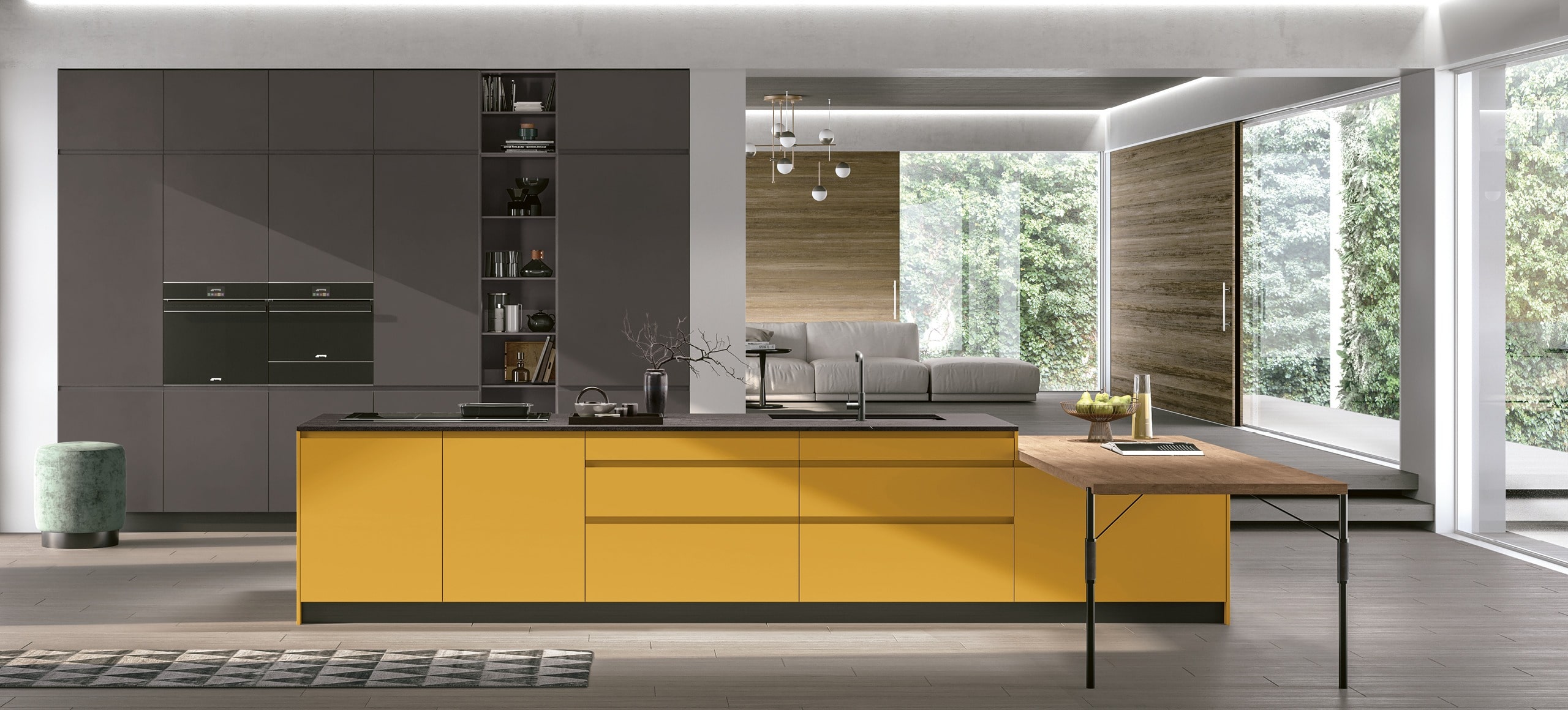 Young è la collezione Stosa dallo spirito giovane e di tendenza. Si inserisce in spazi fluidi e anticonvenzionali in cui le matericità si fondono, gli elementi si mescolano, le funzioni si moltiplicano: non è un ambiente pensato solo per cucinare, ma è uno spazio da vivere nella sua totalità e da condividere in ogni momento della giornata.