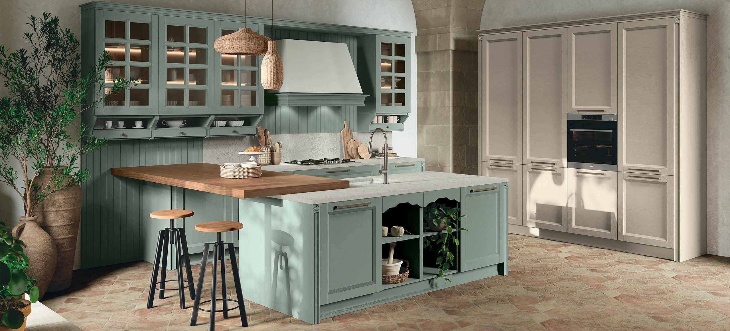 Bolgheri è una cucina che unisce la forza del legno al garbo degli accostamenti cromatici che, insieme alla cura artigianale con cui è progettata e realizzata, concorrono a creare la magia delle atmosfere di un tempo.